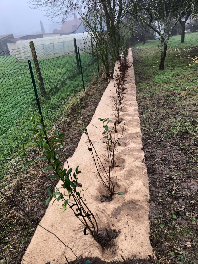 - Mise en place d'une bâche biodégradable, respectueuse de l'environnement, pour limiter les mauvaises herbes tout en favorisant la croissance de la nouvelle haie.